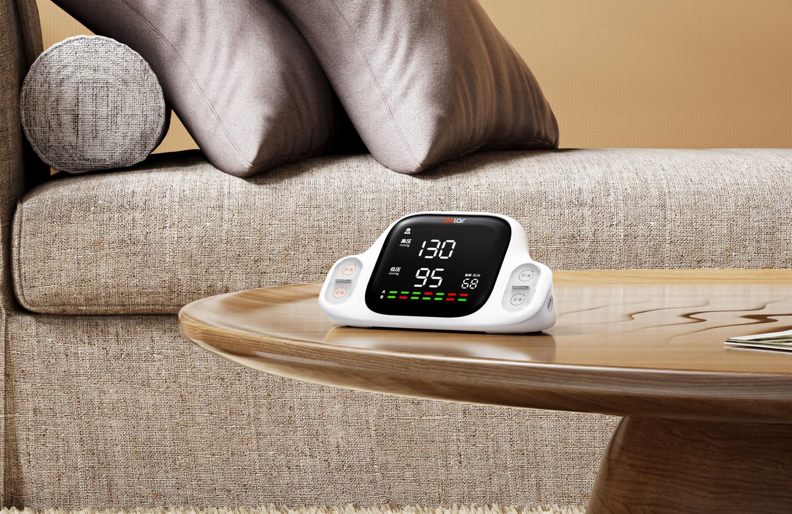 Dual-Row History Lights (7-Day Trend Visualization): An LED light strip displays the trend of the last 7 days, transforming abstract data curves into intuitive color blocks, allowing seniors to quickly assess their health status.