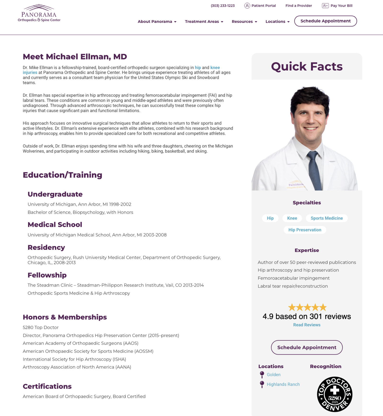 Home to some of Colorado’s most distinguished orthopedic specialists, Panorama has long been recognized for its leadership in patient care, innovation, and surgical expertise. The new website was designed to reflect that same level of excellence online—giving patients a seamless digital experience worthy of the trusted experts behind the name.
