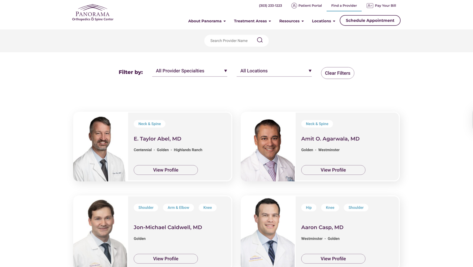 The Panorama Orthopedics & Spine Center website reimagines what a modern healthcare experience can be—elevating design, performance, and usability to match the excellence of the physicians it represents.