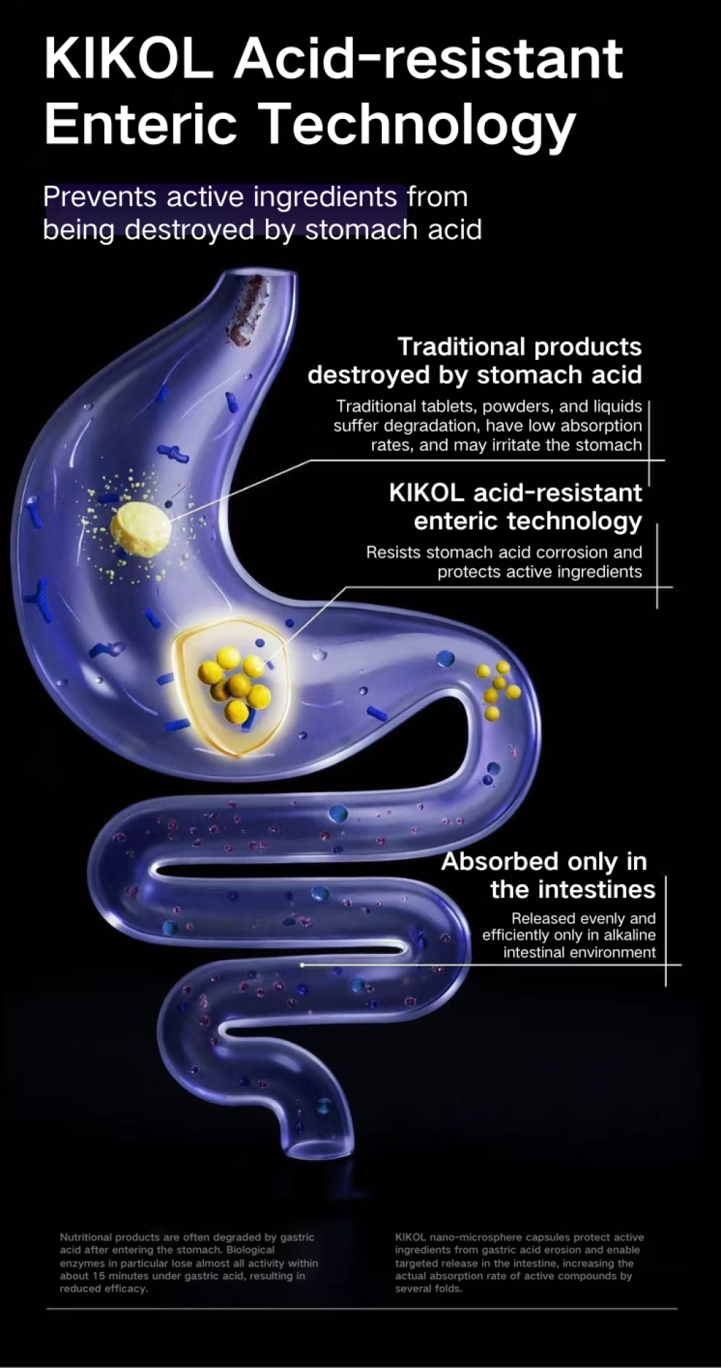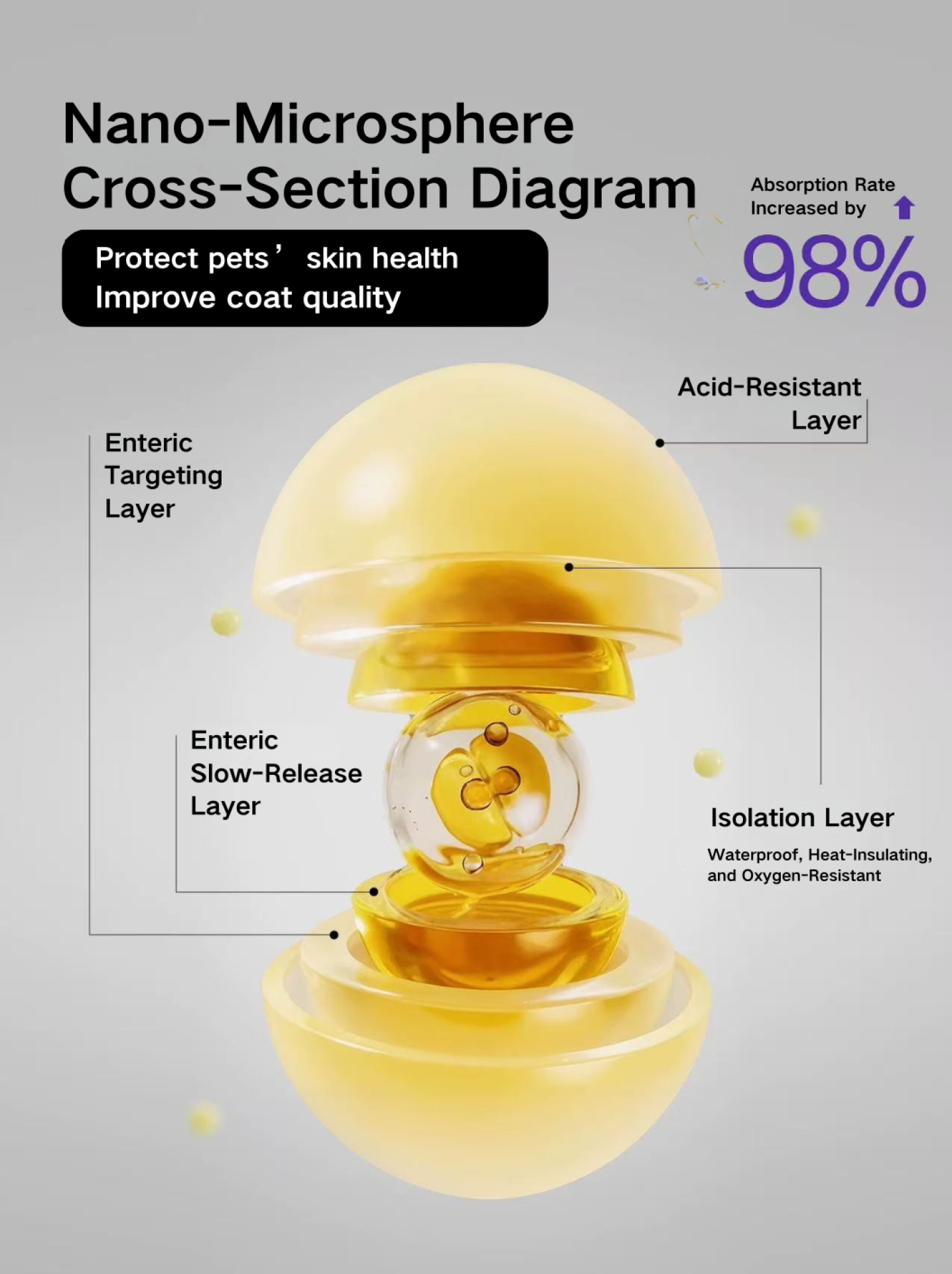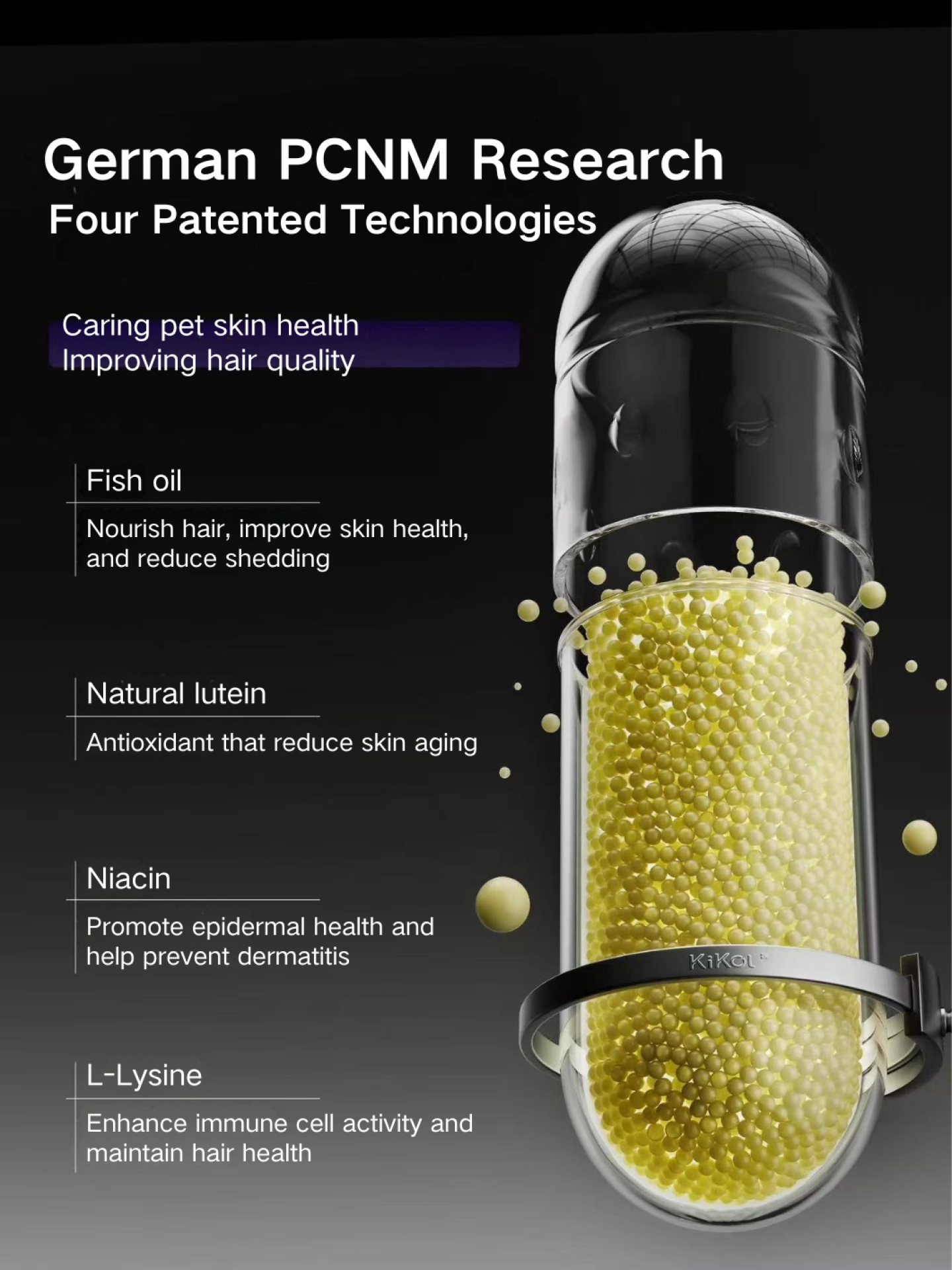 KiKOL German Deep Sea Fish Oil for Pets’s core technology system is led by a German research team, integrating multiple patented formulation technologies, supported by over 38 years of scientific expertise and more than 3,000 clinical trials. This technology ensures that active ingredients are released in the intestinal alkaline environment for optimal bioavailability, overcoming the low absorption and gastric irritation common in traditional powders or liquids.