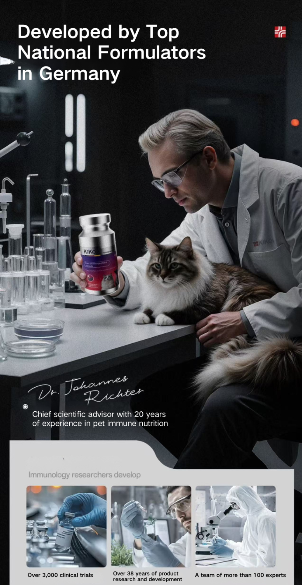 Founded in 2015, KiKOl is a German pet health brand dedicated to “Empowering superior nutrition with science.” The name derives from “Kinetic Intelligence of Pets,” symbolizing the integration of scientific precision and emotional care. KiKOl aims to deliver safe, targeted, and high-performance nutritional solutions that safeguard pets’ well-being worldwide.