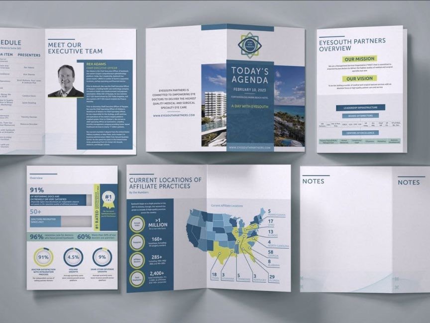 In 2023, EyeSouth Partners hosted the Doctors Forum at Fontainebleau Miami Beach, and our team was in charge of the event branding. We followed a consistent theme and designed, produced, and fabricated the branding and signage for the event. This included: